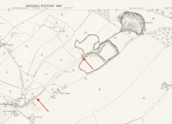 Chalk pit and lime kilns at Blue Bell Hill 1894.jpg